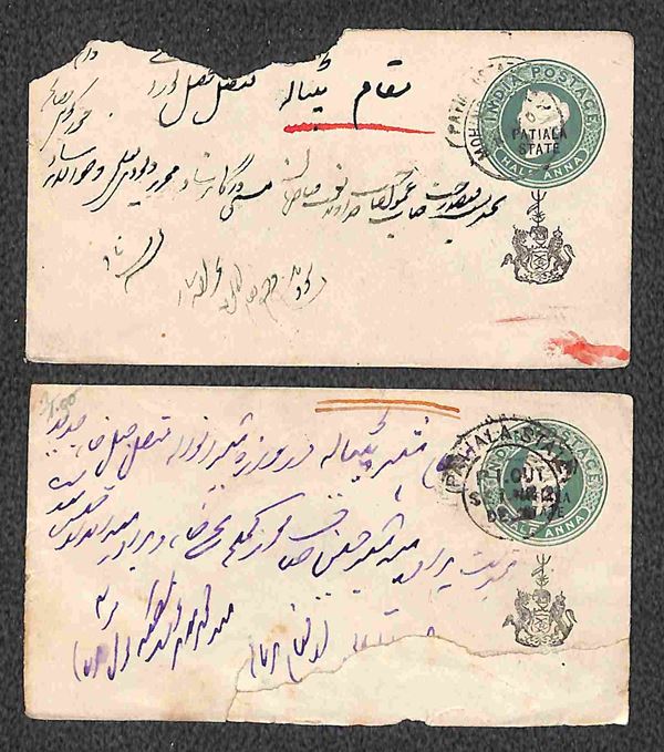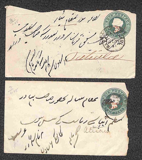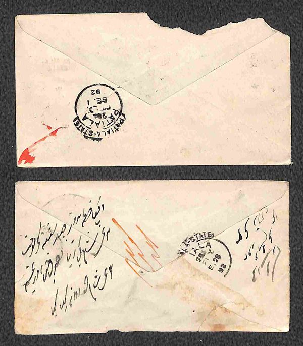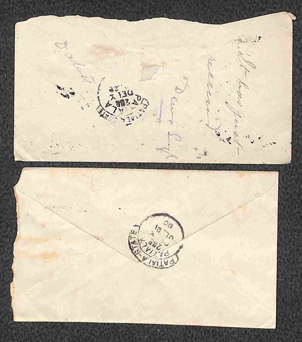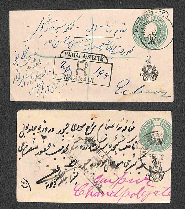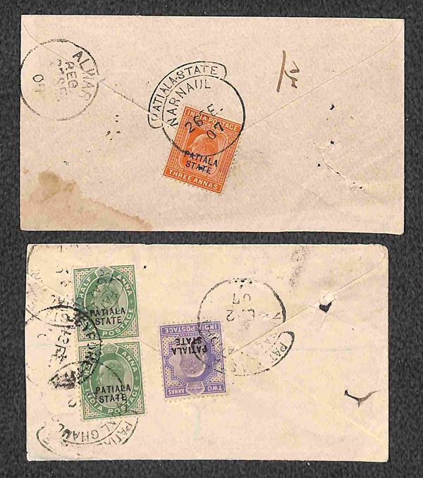 Patiala/Putialla - 1890/1907 - sei buste postali usate nel periodo - due raccomandate con affrancature complementari al retro