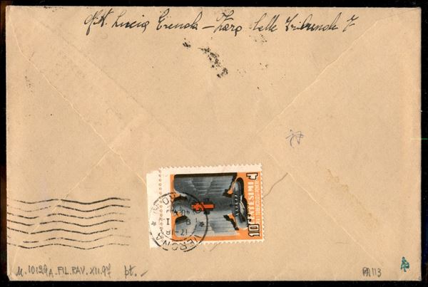 Proclamazione dell'Impero Aerea 1 lira violetto (Aerea 113) su lettera da Zara 8.1.40 per Verona - al verso erinnofilo Campagna Antitubercolare annullato in arrivo
