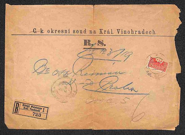 Raccomandata affrancata con frazionato del 40 heller da Vinohrady a Praga del 4.1.19