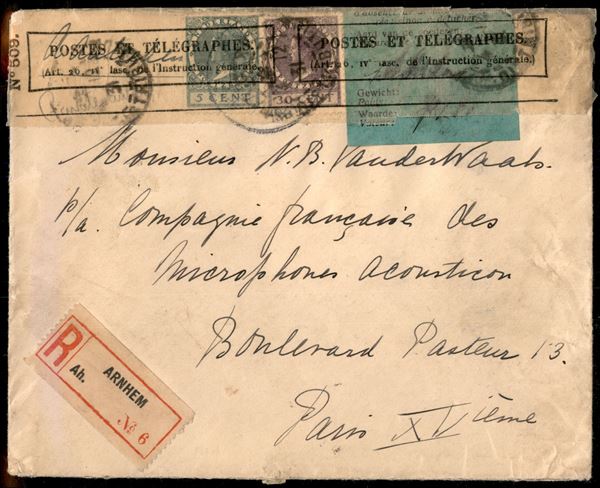 Raccomandata da Arnhem a Parigi del 4.12.31 tassata in arrivo