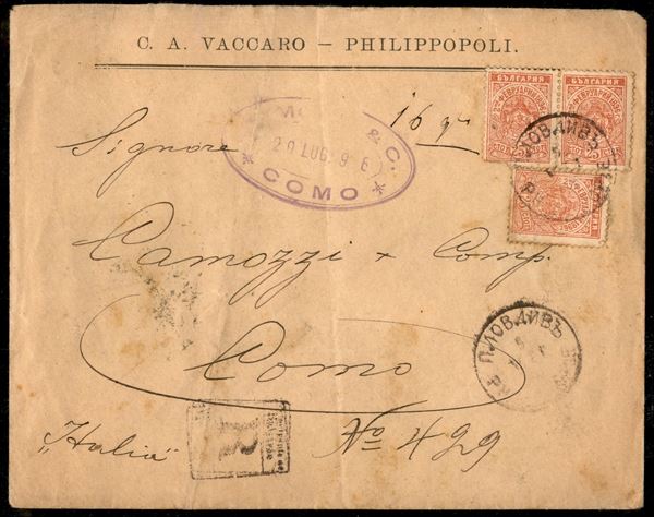 Raccomandata da Filippopoli a Como del 5.7.96 affrancata con singolo e coppia del 25k (43)