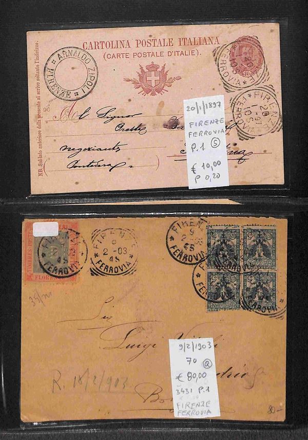 REGNO - 1893/1914 - Tondo Riquadrati - Collezione di oltre 180 buste e cartoline degli annulli della provincia toscana di Firenze in un album - merita esame