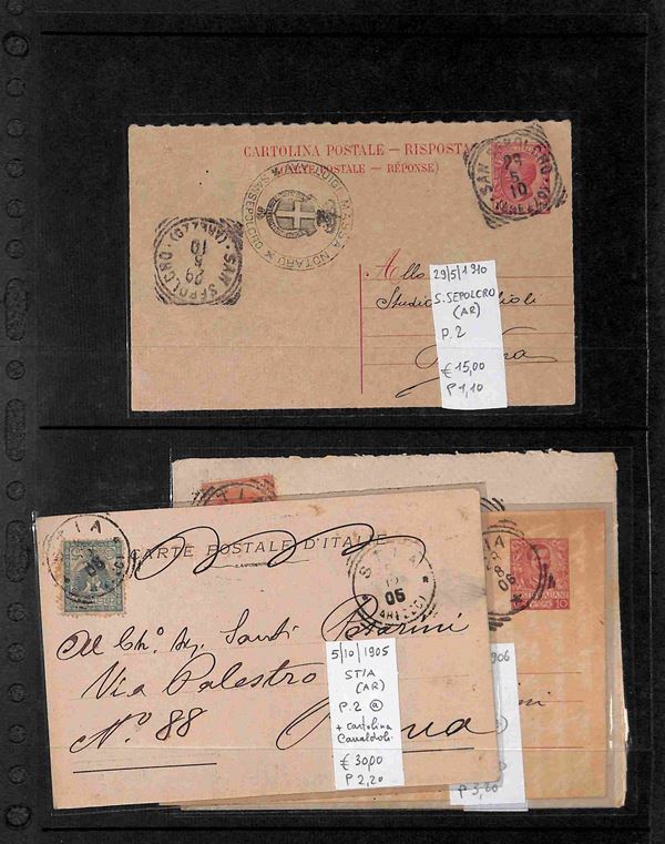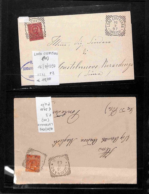 REGNO - 1896/1914 - Tondo Riquadrati - Collezione di oltre 130 buste e cartoline degli annulli della provincia toscana di Arezzo, Grosseto e Lucca in un album - merita esame