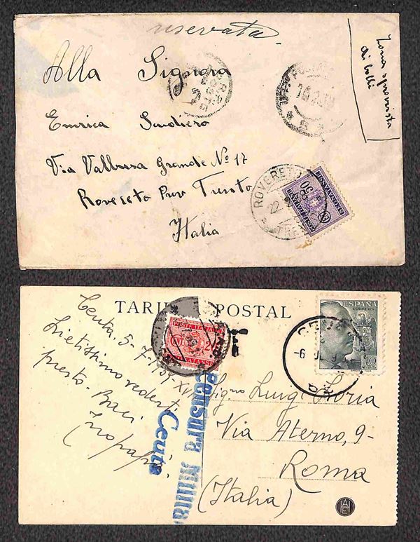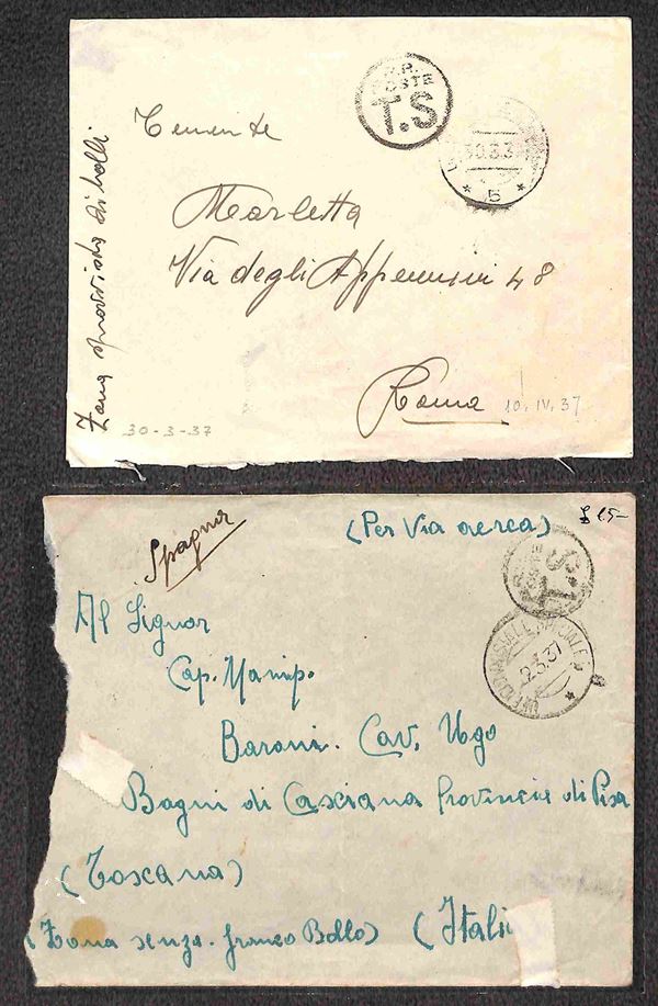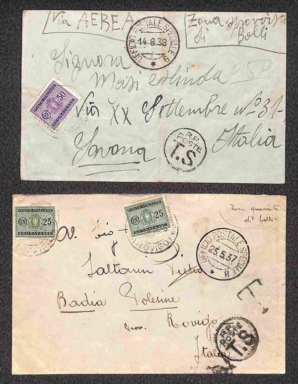 REGNO - 1937/1939 - Guerra di Spagna - 10 lettere affrancate con Segnatasse e bollo Ufficio Postale Speciale delle truppe impegnate nel conflitto