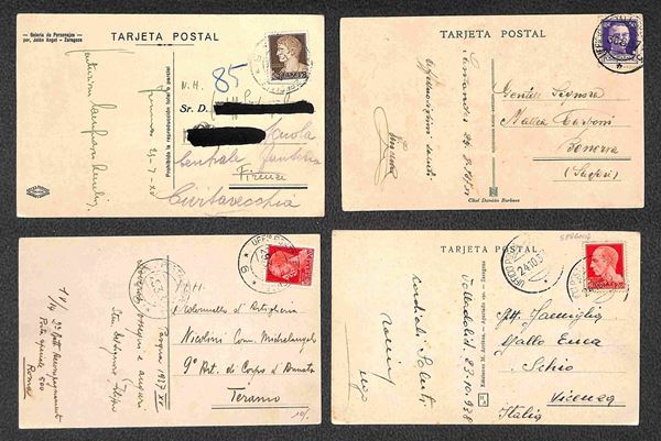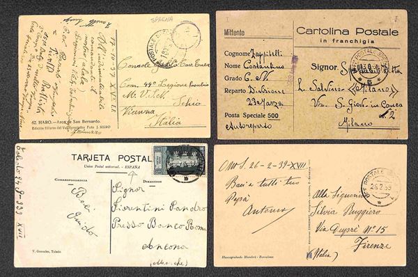 REGNO - Guerra di Spagna - Insieme di 24 cartoline affrancate e in franchigia annullate con bollo Ufficio Postale Speciale delle truppe impegnate nel conflitto
