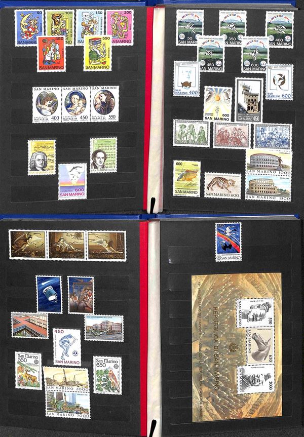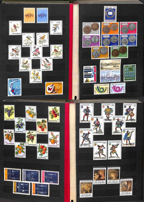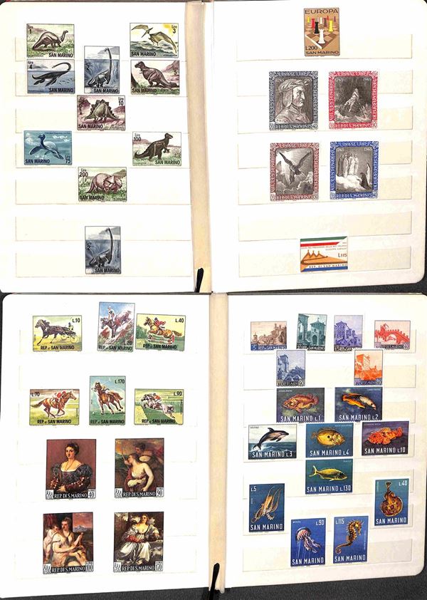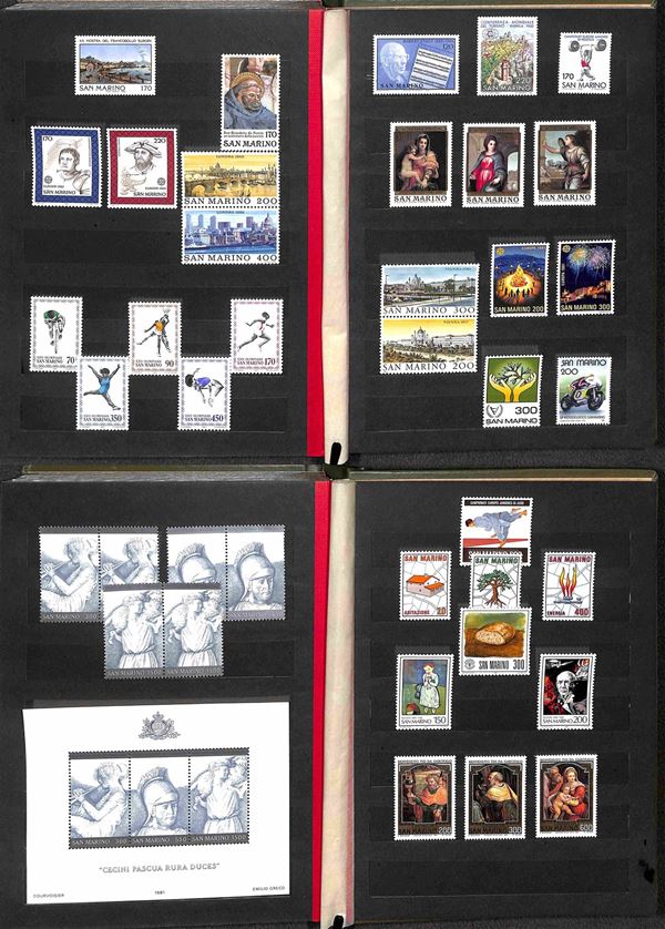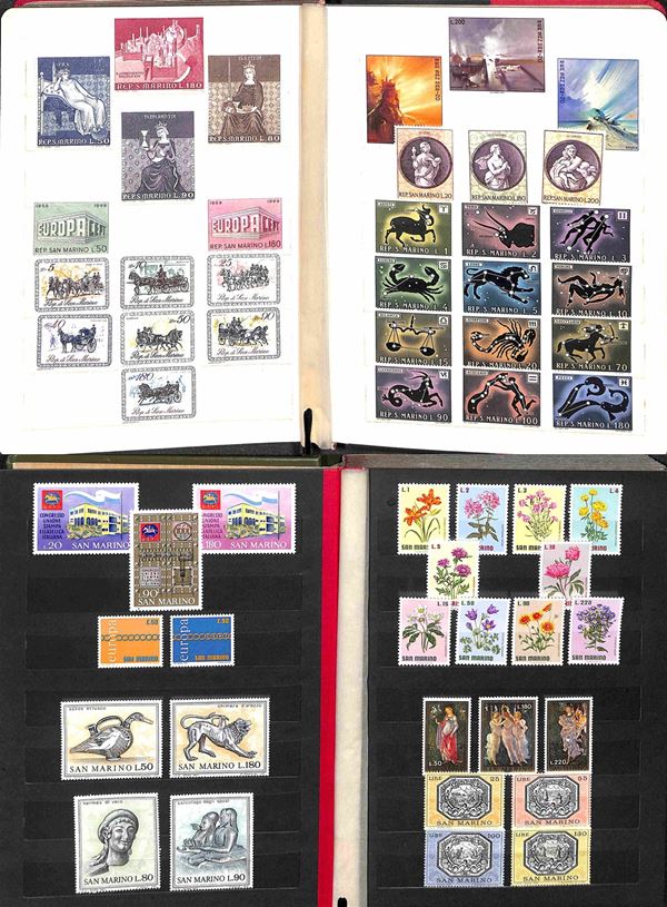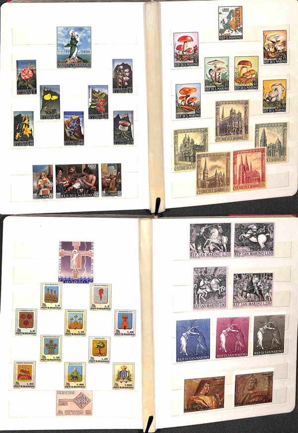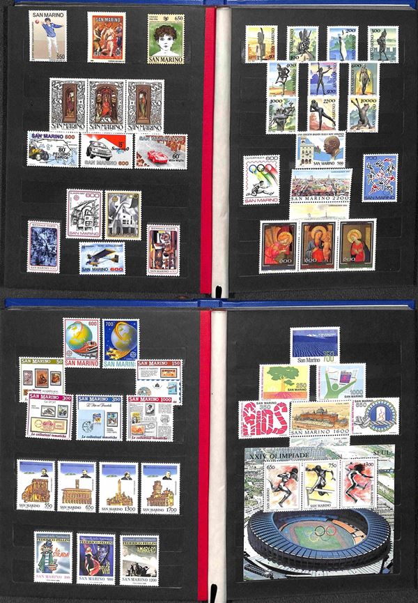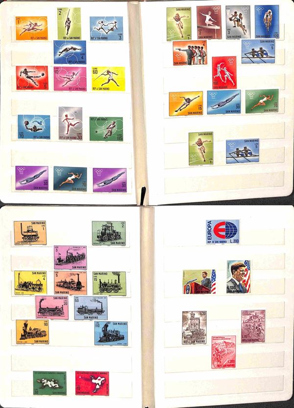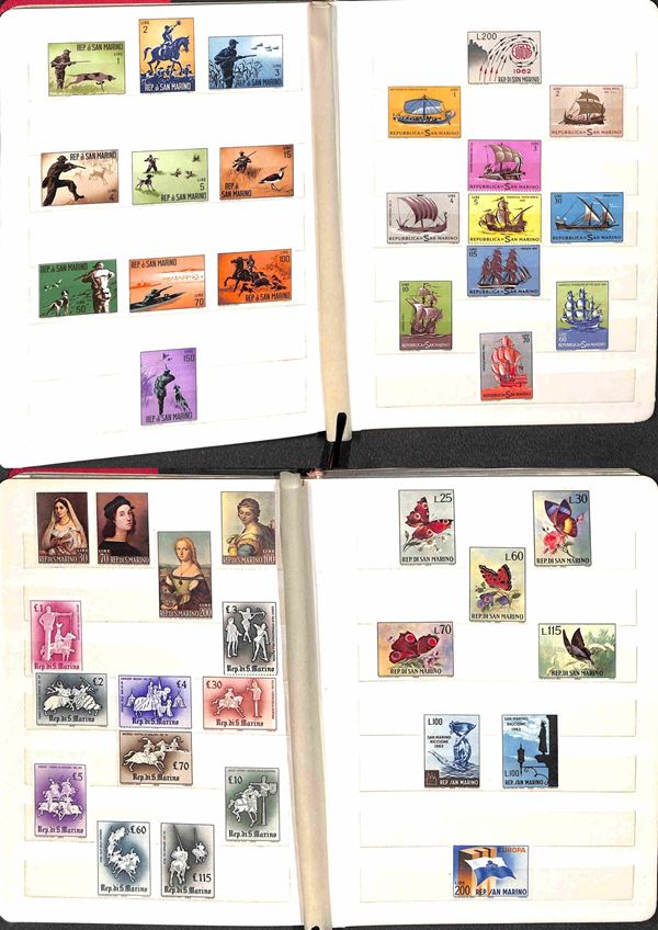 SAN MARINO - 1962/1989 - Collezione di valori e serie complete del periodo (597/1261) - montati in tre piccoli album raccoglitori - gomma integra - valore di catalogo 400 €