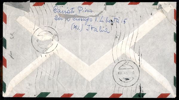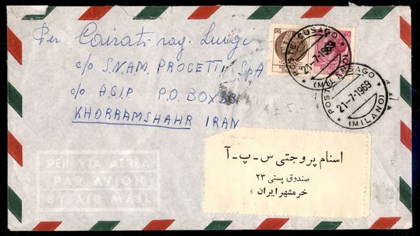 Turrita - Tre aerogrammi con diverse affrancature e destinazioni - Sant'Ilario/Angola (1960) + Cusago/Iran (1969) + Genova/Giappone (1959) - interessante insieme