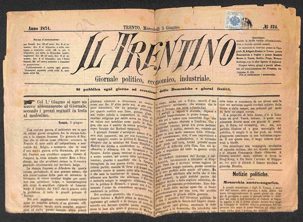 1 kreuzer (2 - tipo III) - intero giornale Il Trentino da Trento del 3 giugno 1874