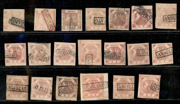 1858 - Insieme di 28 pezzi di 5 valori diversi - usati - da esaminare