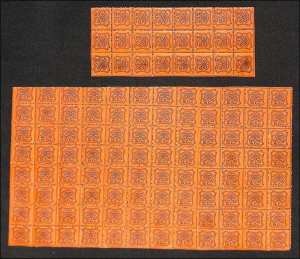 1869 - 10 cent vermiglio arancio (26c) - intero foglio di 120 diviso in due blocchi (pos. 1/117 + pos. 13/120) - gomma integra