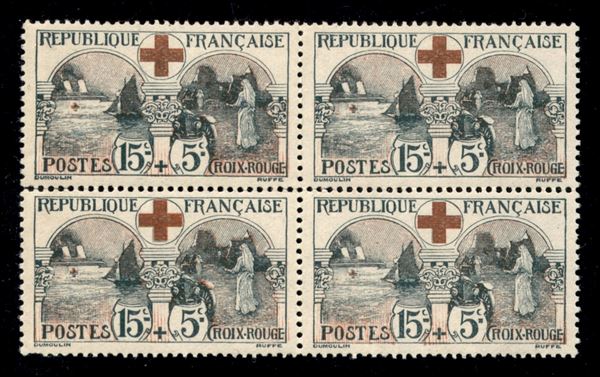 1918 - 15 + 15 cent Croce Rossa (136) in quartina - gomma integra