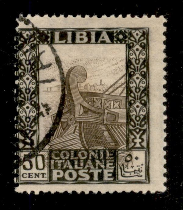 1921 - Errore di Colore - 50 cent Pittorica (28Ag) usato - unico noto con centro spostato (in basso) - cert. Colla - non quotato usato