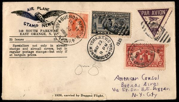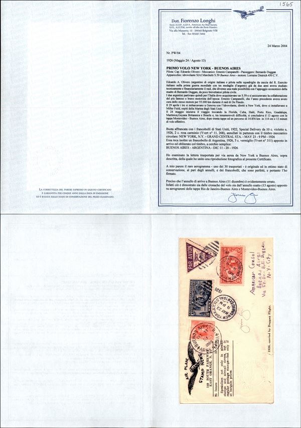 1923 (23 maggio) - New York Buenos Aires - aerogramma affrancato 10 cent + 2 cent (Yvert 11 + 268) annullato in arrivo - 30 volati - raro - cert. Longhi