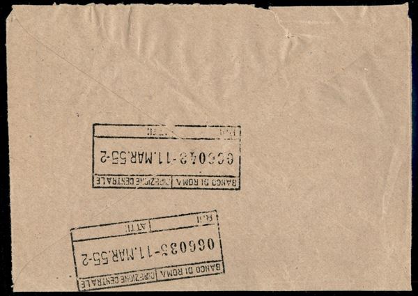 1955 - Busta di servizio delle Poste con timbro "posta recuperata" relativa all'incidente aereo sul Monte Terminillo del volo Bruxelles Leopoldville - Longhi