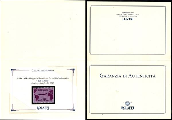 1961 - 205 lire Gronchi Rosa (921) - gomma integra - molto bello, fresco e ben centrato - cert. garanzia autenticità Bolaffi