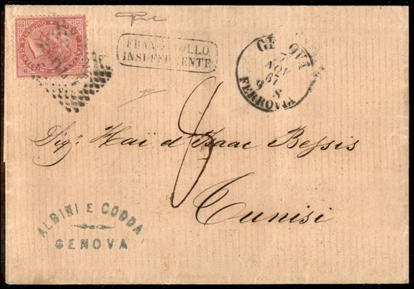 40 cent De La Rue (L20) su lettera da Genova a Tunisi del 7.11.67 - tassata - R. Diena