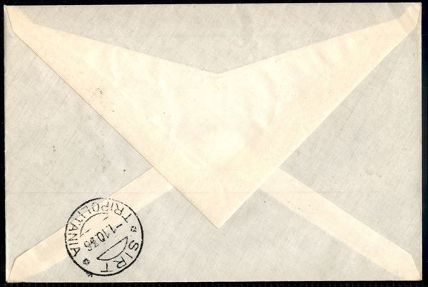 50 cent (28 - Aerea) + complementari (46 coppia) - aerogramma FDC da Tripoli a Sirte del 1.10.36