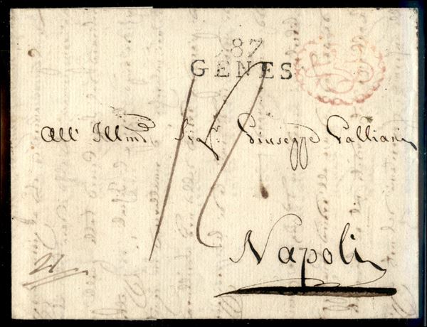 87 Genes - lettera per Napoli del 1.1.1806 - tassata