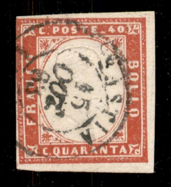 Bastia (P.ti R2) apposto in arrivo - 40 cent (16F - Sardegna) - usato - margini perfetti - appena rasente a sinistra in alto - cert. Colla