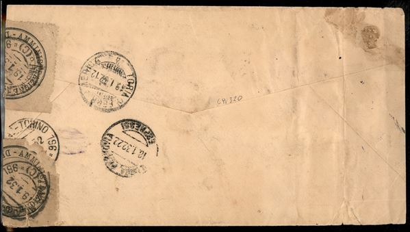 Busta affrancata con 1,20 lire Aerea (5) + 10 lire Imperiale Aerea (17) + 1,25 lire Accademia Navale (302) da Bologna per Cali (Colombia) del 18.1.32