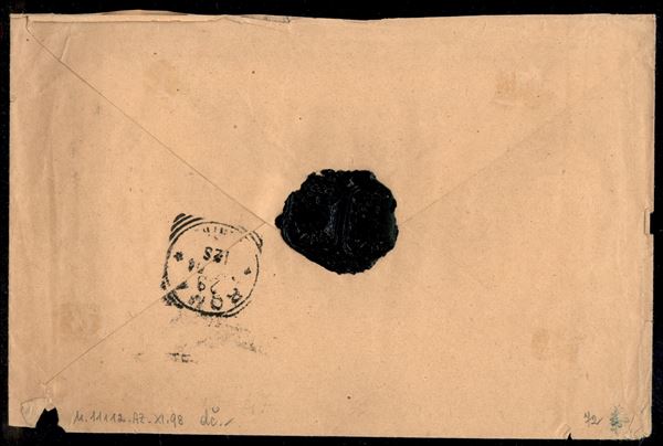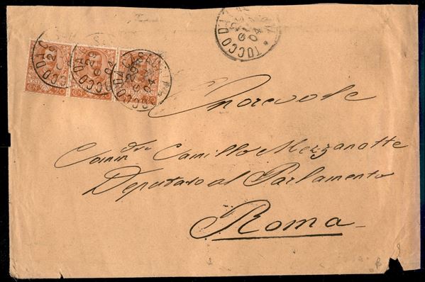 Busta affrancata con striscia di tre del 20 cent Floreale (72) da Tocco da Casauria per Roma del 29.6.04 - ex coll. Provera