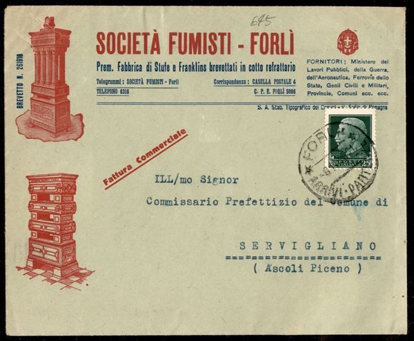 Busta commerciale affrancata con 25 cent Imperiale (248) da Forlė per Servigliano del 6.11.35 - ex coll. Provera