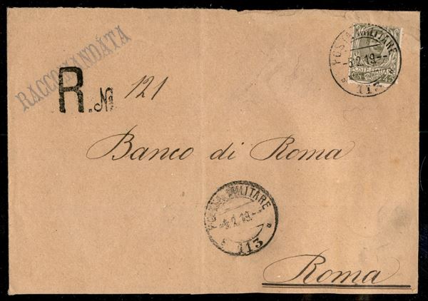 Busta raccomandata affrancata con 45 cent Floreale (75) con annullo Posta Militare 113 per Roma del 5.2.19 - ex coll. Provera