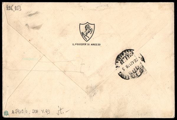Busta raccomandata con affrancatura mista 50 cent Parmeggiani (225) + 1,25 lire Imperiale (253) da Arezzo a Forte dei Marmi del 29.8.29 - ex coll. Provera