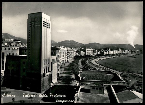 Cartolina affrancata con 50 lire Italia al Lavoro (647) + 5 lire Turrita (710) da Salerno per Mogadiscio del 20.8.57