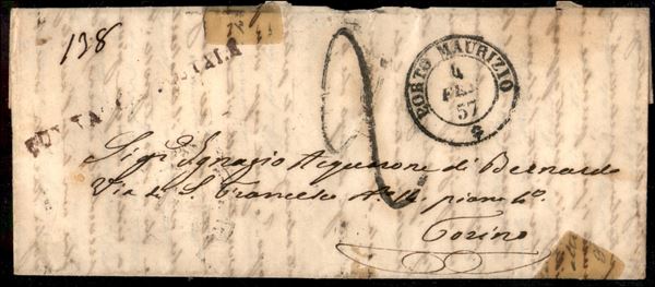 Con Vaglia Postale - 1856/1857 - due lettere da Porto Maurizio a Torino - non affrancate e tassate