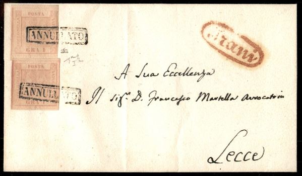 Due 1 grano (3) su busta da Trani a Lecce - molto bella - Gazzi + Chiavarello