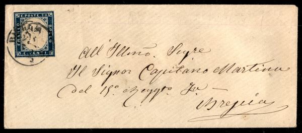 II Guerra d'Indipendenza - Posta Militare Sarda Quartier Generale (P.ti 13) - al retro di bustina affrancata con 20 cent (15Ba) per Brescia del 26.9.59 - tarda data d'uso - cert. E. Diena