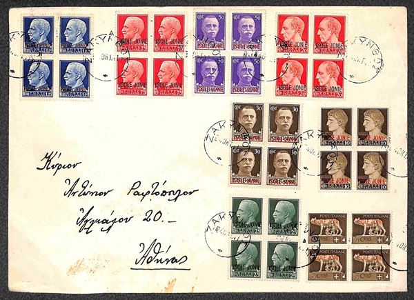 Imperiale (1/8) - serie completa di 8 valori in quartine su busta da Zante del 4.10.1941 indirizzata a Atene