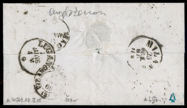 Letterina affrancata con 10 cent V. Emanuele II arancio rossastro (L17b) da Varese a Lugano del 24. gen. 66 - tariffa raggio limitrofo - ex coll. Provera