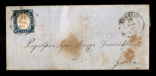 Lumello (P.ti 12) - 20 cent (15E) su bustina per Ginevra del 27.5.62