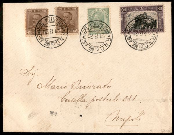 Regia Nave Cittą di Milano - R.N.C. di Milano/Sped. Artica 1928 - 21.8.28 su busta per Napoli