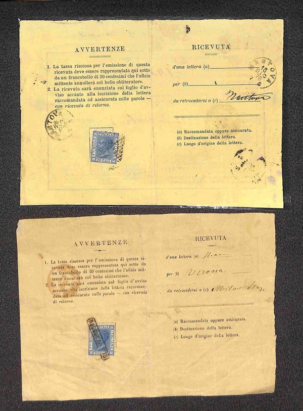 REGNO - 1868/1925 - Lotto di 6 ricevute di ritorno affrancate con valori del periodo