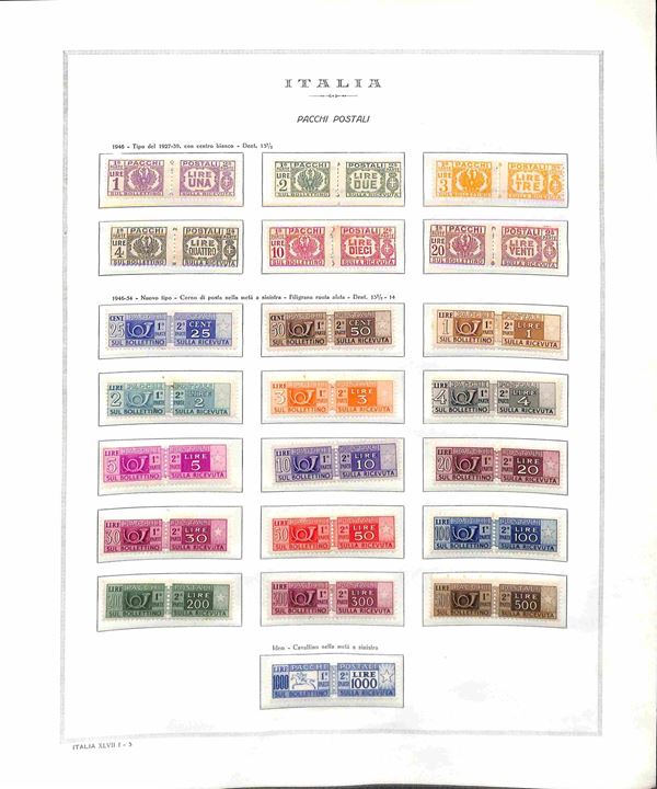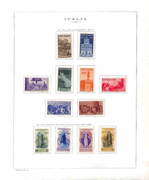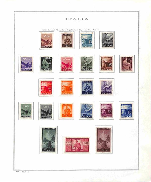 REPUBBLICA - 1945/1990 - Collezione completa di valori e serie complete di posta ordinaria + servizi del periodo nuovi montati in 2 album Marini - da esaminare