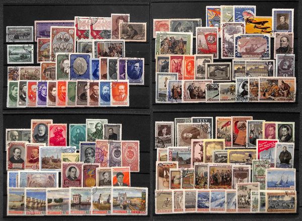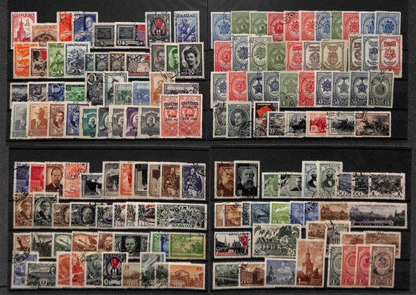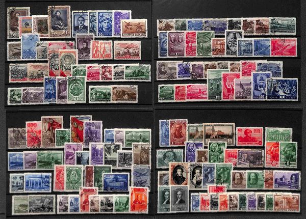 RUSSIA - 1922/1960 - Accumulazione del periodo di valori usati montata su 43 cartoncini maxi - da esaminare