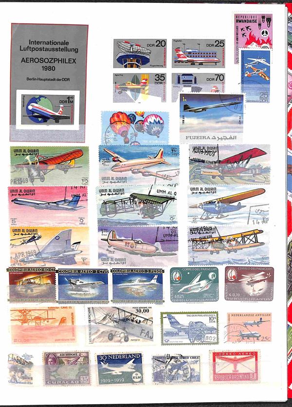 TEMATICA - Aviazione - Collezione di circa 550 francobolli principalmente usati + 11 buste e cartoline montati in classificatore - da esaminare