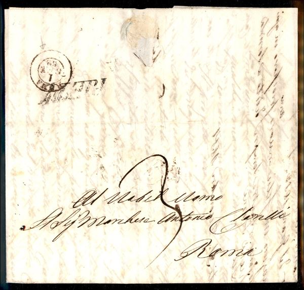 1 gennaio 1852 - Primo giorno d'uso - Lettera da Rieti a Roma con tassa a carico - interessante