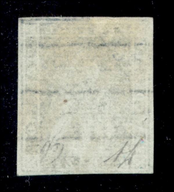 1851 - 2 crazie azzurro chiaro su grigio (5) - quattro margini bianchi - usato - Diena