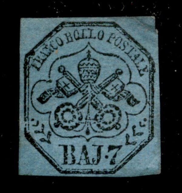 1852 - 7 baj azzurro (8) - gomma originale - cert. Diena