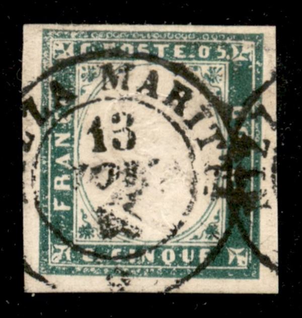 1855 - 5 cent verde smeraldo grigiastro (13g) - usato - Raybaudi + Diena (1.000)