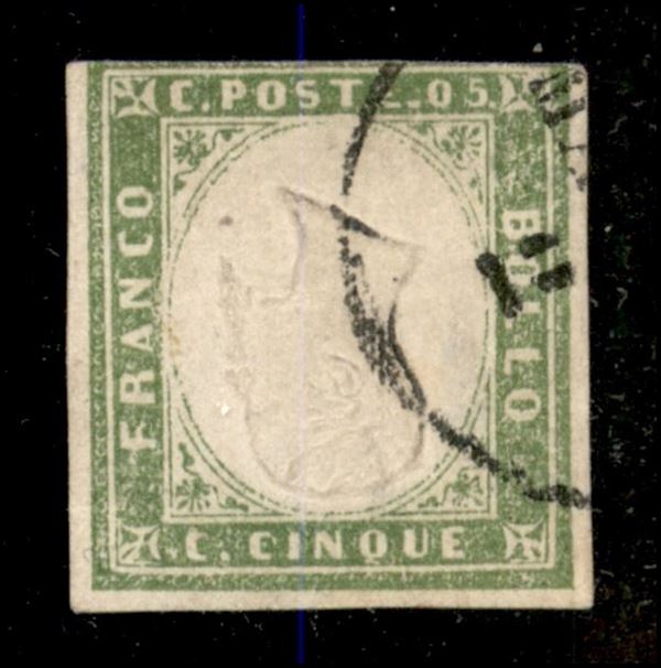 1862 - 5 cent verde olivastro (13Dc) con effige capovolta - leggermente toccato in alto - usato