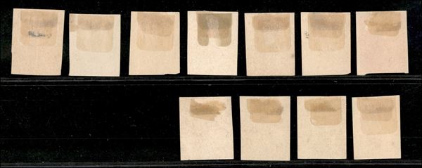 1881 - 11 prove di colore su carta sottile del 2 real - senza gomma