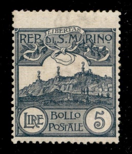 1903 - 5 lire Veduta (45) - gomma originale con invisibile traccia di linguella - ben centrato (400)