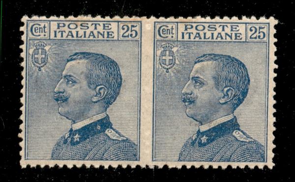 1908 - 25 cent Michetti (83 l) - coppia orizzontale non dentellata al centro - gomma integra