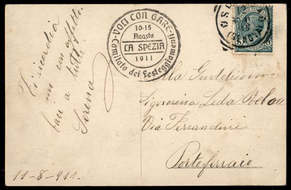 1911 (10/15 agosto) - La Spezia - cartolina usata - annullamenti da esaminare (probabilmente non coevi)