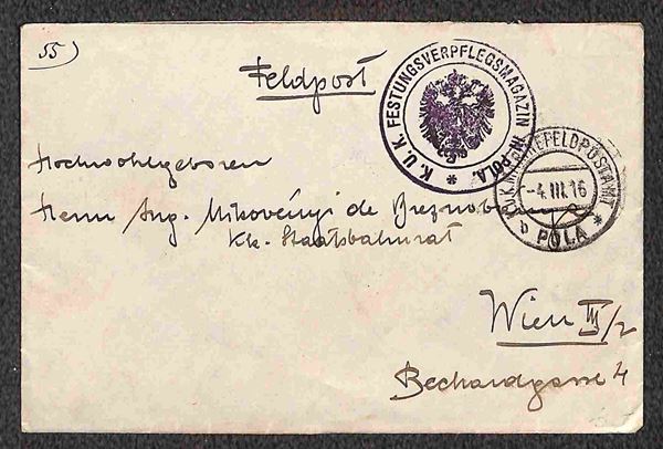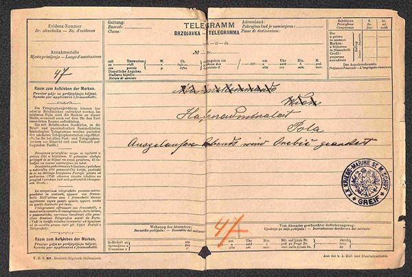 1916/1917 - Pola/K.K. Marine Feldpost - due buste + un telegramma
